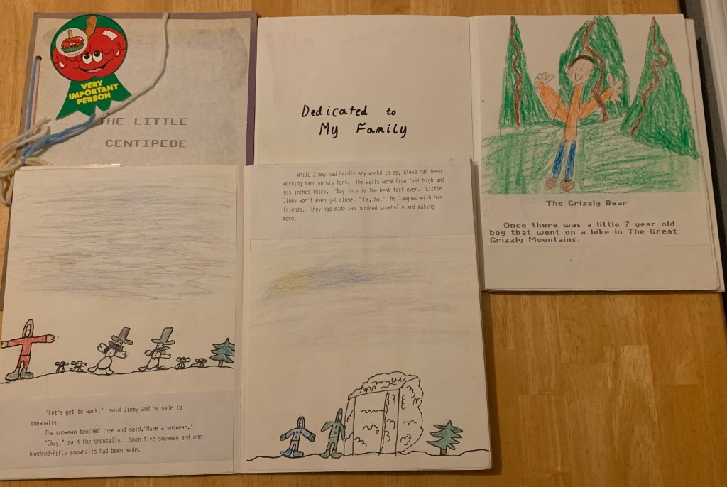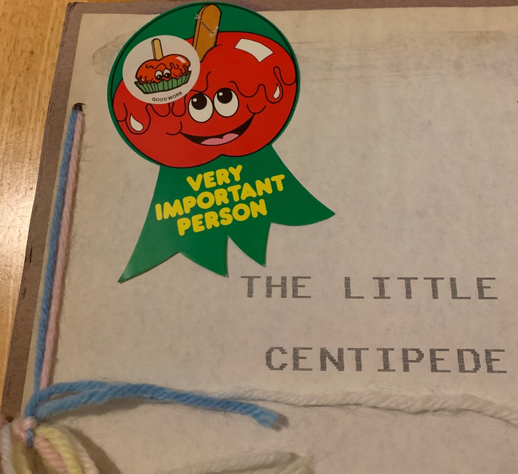 Furthermore, upon comparing the sorry and faded state of Centipede, the characteristic rippling effect on the paper of late 1980’s or early 90’s era white liquid Elmer’s glue that was almost certainly the sole binding material (aside from the two unmatching strands of yarn. Yarn!), it is clear that this work alone was verifiably created in the author’s childhood, by the author’s childhood self, himself, the only work of the three both for children and by an actual child, and that performed with very heavy assistance by his parents and teacher (the notoriously scary Mz. Black—who often wore black, and who had an unerasable sad face on the front chalkboard, a perfect circle in permanent black marker, for all mildly out-of-line first or second graders to inscribe their names, of which it is said, the author himself was only asked to perform a single time during those two years—who was unavailable for immediate comment or photo).