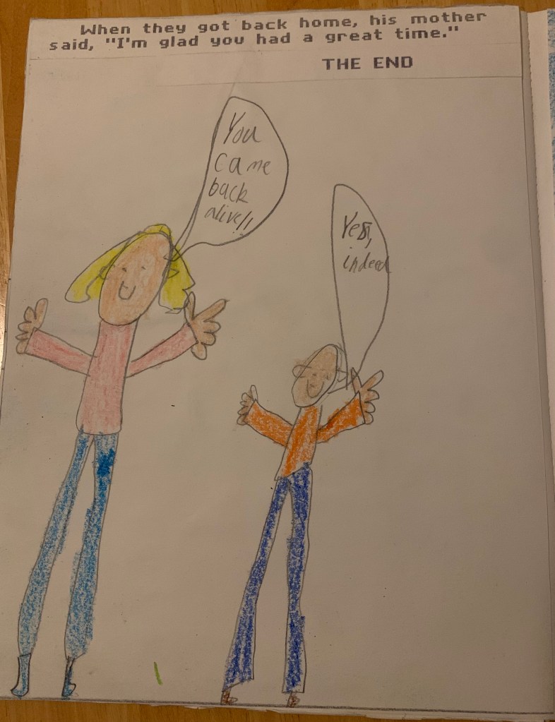 The boy returns from a camping trip, the only point in the story where his mother is shown.