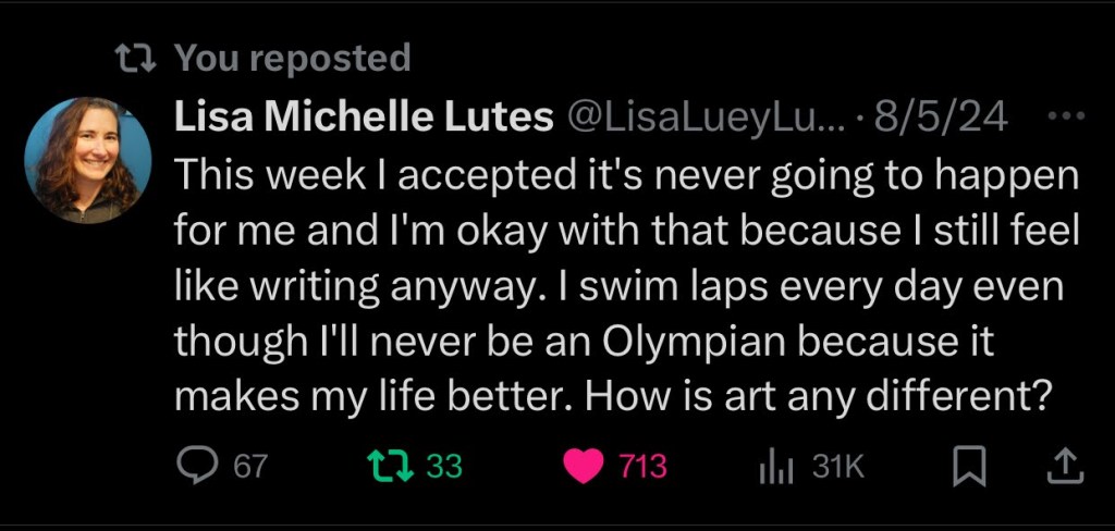 I read of people who submit poems and books on Submittable.com to over 100 different publishers and journals. I still don’t think I could ever become that person. You see, I’ve worked as a scientist and a medical writer for a long time now. When we write manuscripts, of course they are often rejected by the scientific journals (usually!). The general consensus, at least to me, is that if you’ve already done three submissions, you’ve just got some vein of unrealistic idealism in you, and it’s just time to submit it to the lowest acceptable journal and just publish it somewhere and forget about prestige due to your apparent lack of novelty.